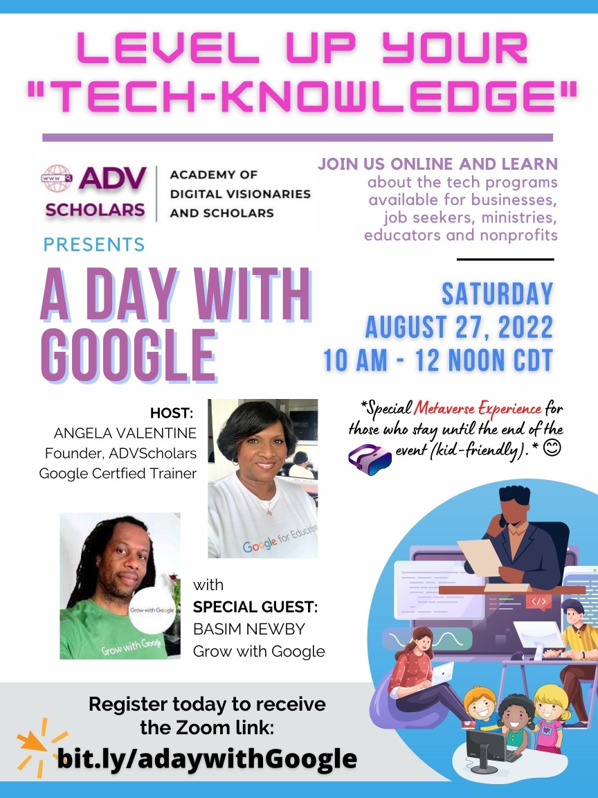 I was providentially introduced to Angela Valentine, Google Applications Extraordinaire. Her introduction was warm and assuring. With her guidance, my comfortability and progression in maneuvering within the various technological platforms soared.
